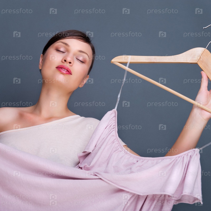 Молодая женщина примеряет платье