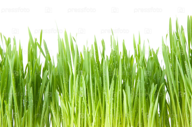 Свежая зеленая трава на белом фоне