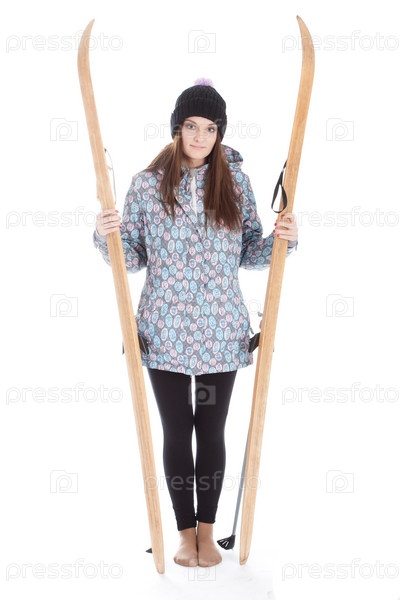 Молодая красивая женщина с лыжами