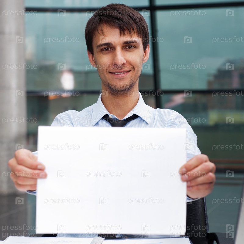 Бизнесмен с пустым листом бумаги