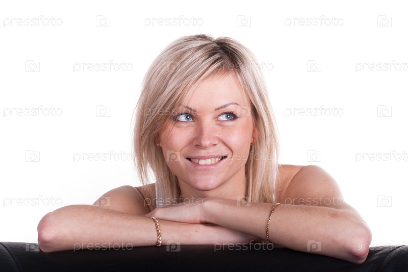 Девушка выглядывает из-за дивана