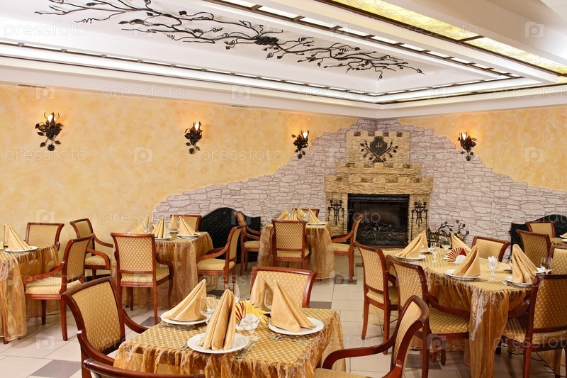 Просторный ресторан с большим камином