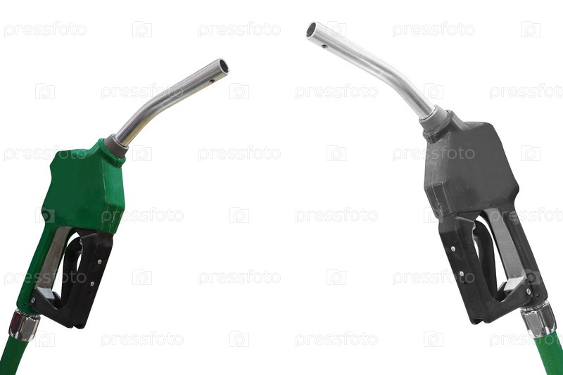 Пистолеты заправочной колонки на белом фоне