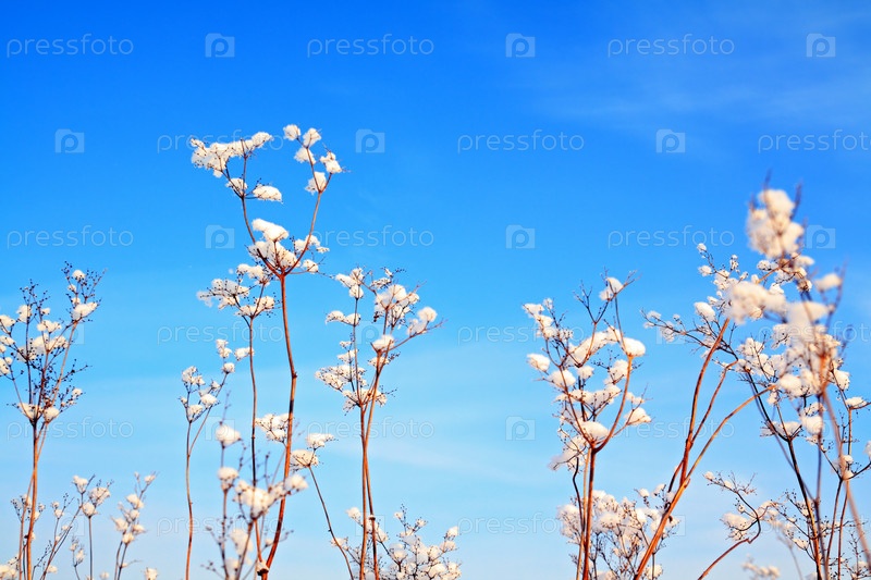 Кусты в снегу на фоне неба