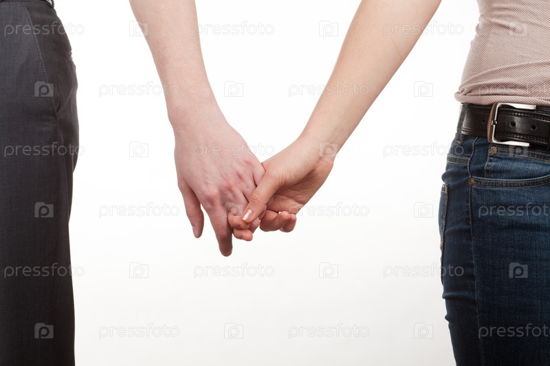 Руки влюбленной пары на белом фоне