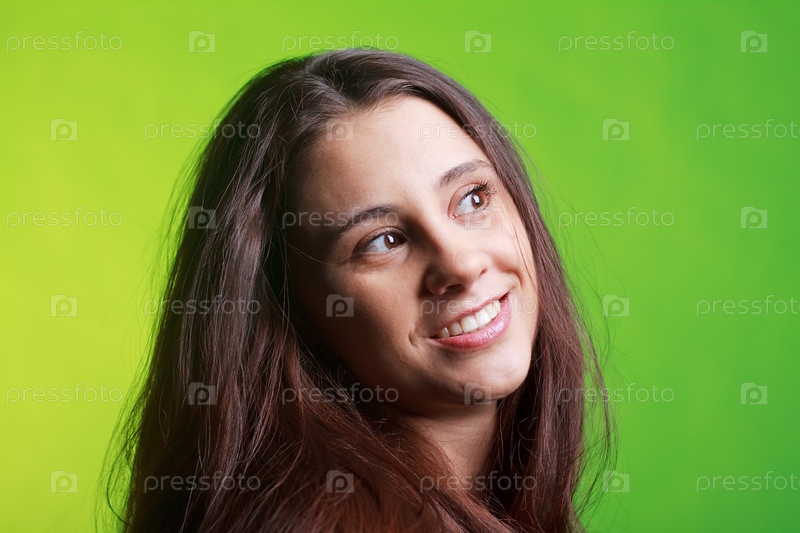 Девушка с длинными волосами на зеленом фоне