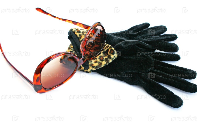 Солнцезащитные очки и перчатки на белом фоне