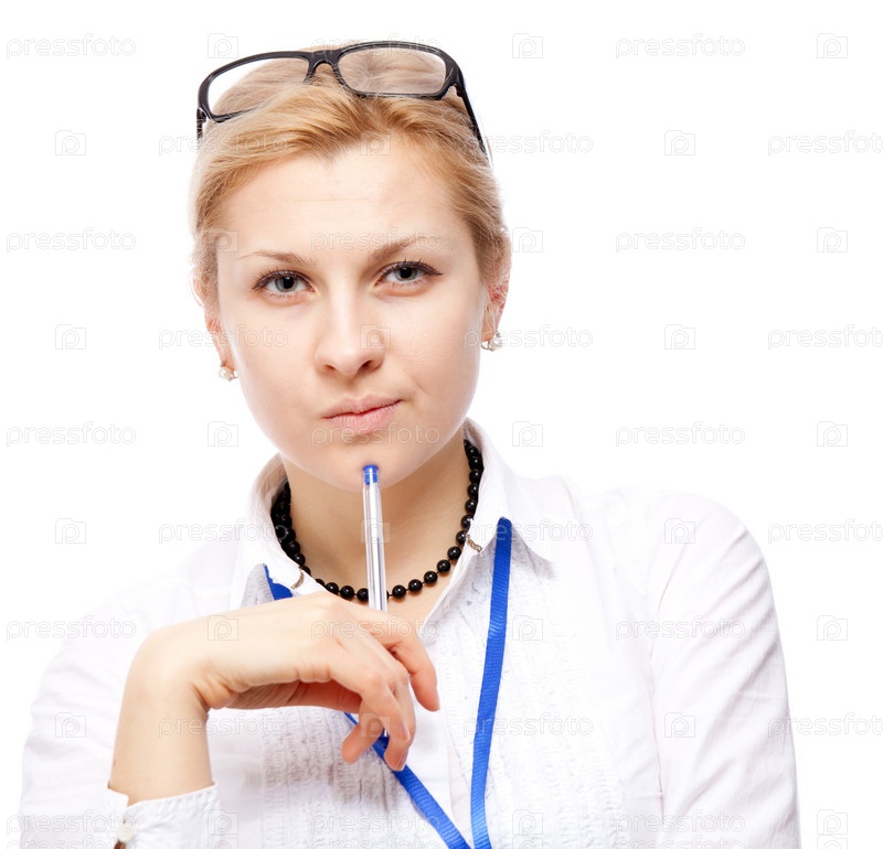 Задумчивая бизнес-леди. изолирована на белом фоне