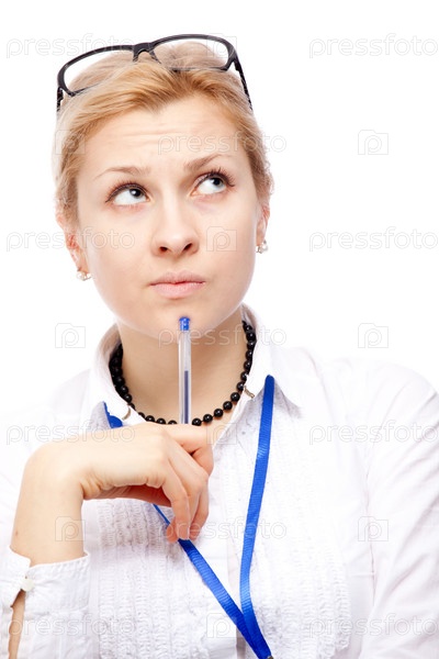 Задумчивая бизнес-леди. изолирована на белом фоне