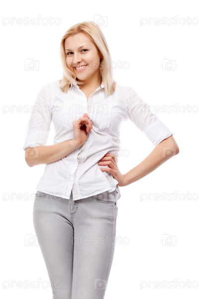 Портрет молодой женщины на белом фоне