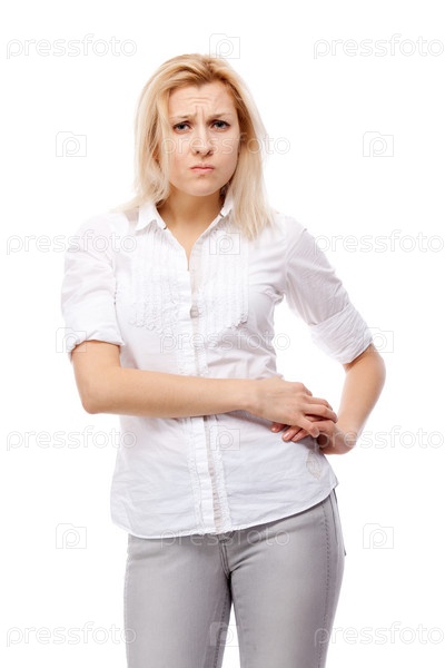 Недовольная женщина, изолирована на белом фоне