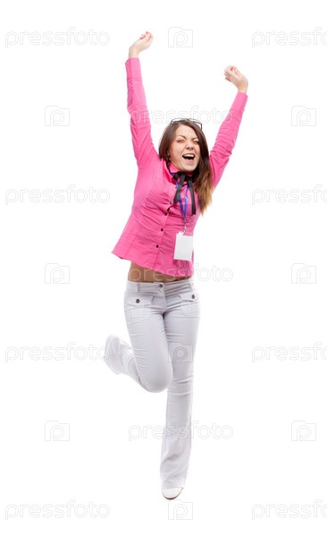 Счастливая девушка на белом фоне