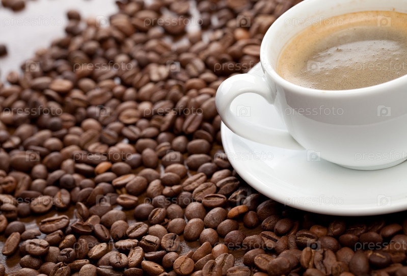Чашка кофе и кофейные зерна