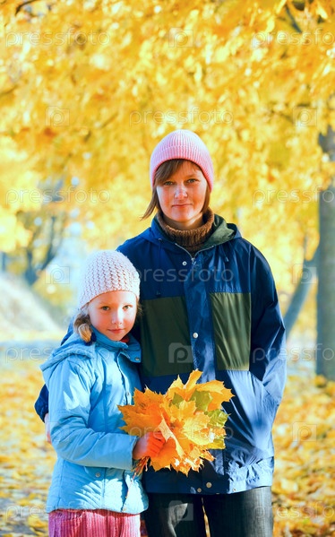 Мама с дочкой в осеннем парке
