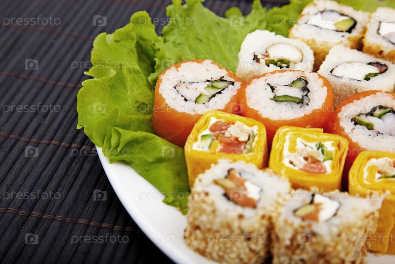 Роллы на тарелке