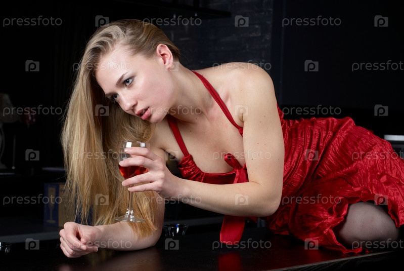 Девушка на барной стойке с бокалом вина