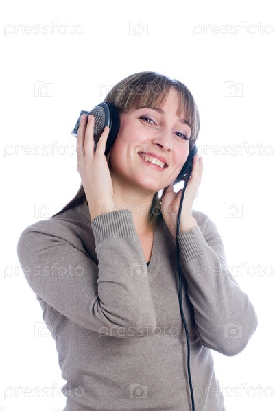 Молодая женщина слушает музыку в наушниках