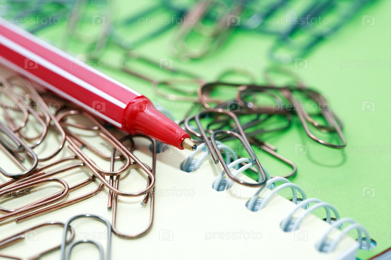 Скрепки для бумаги и ручка