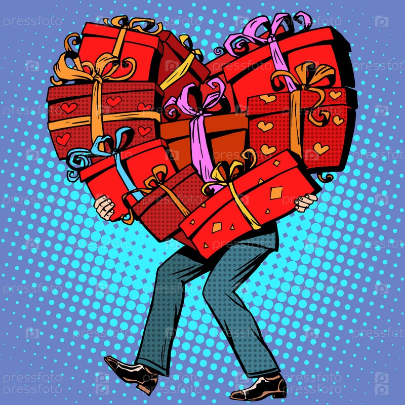 Мужчина с подарками на день Святого Валентина
