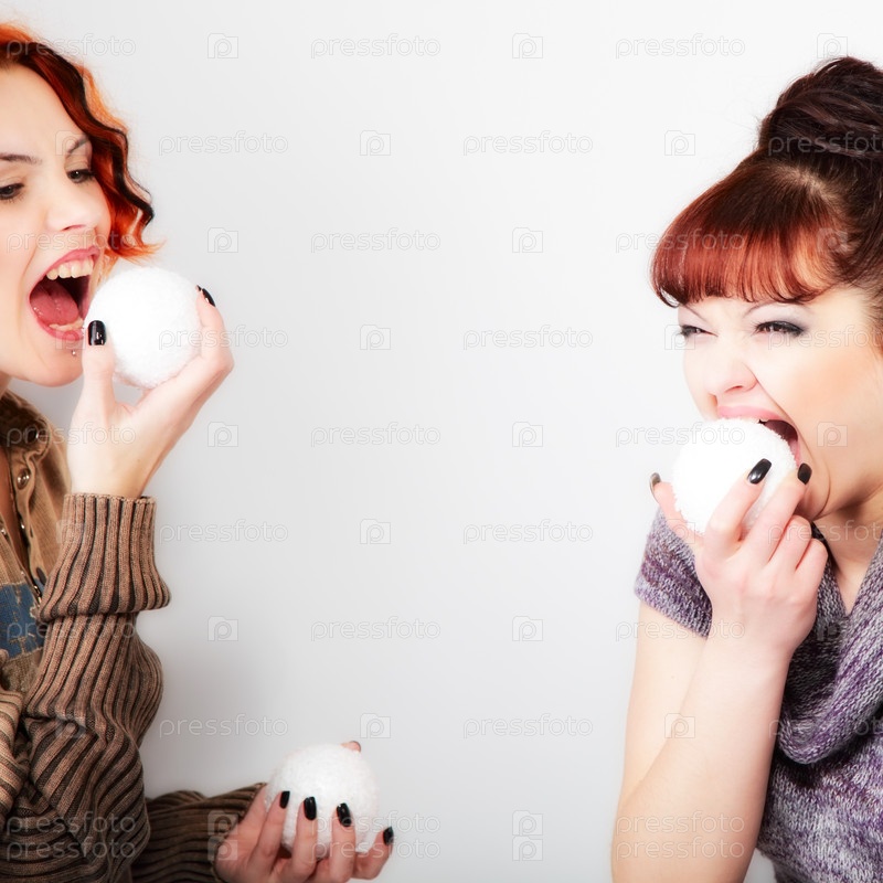 Две девушки едят сладости