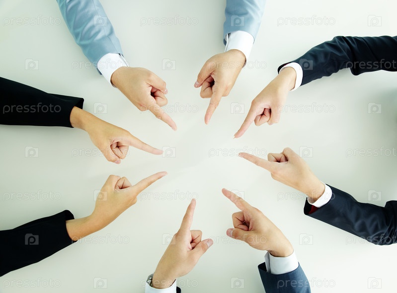Деловые люди указывают пальцами друг на друга, крупный план