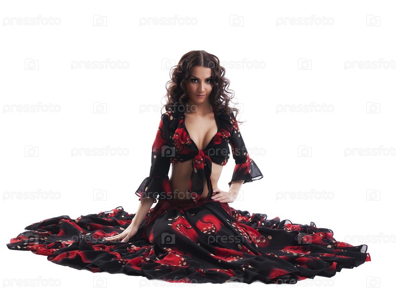 Молодая женщина в цыганском костюме, изолирована на белом фоне