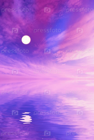 Фантастический пейзаж с луной