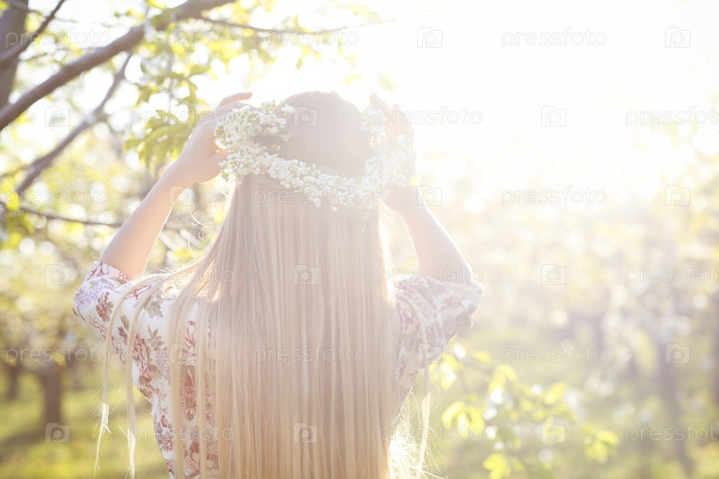 Женщина с длинными светлыми волосами в венке