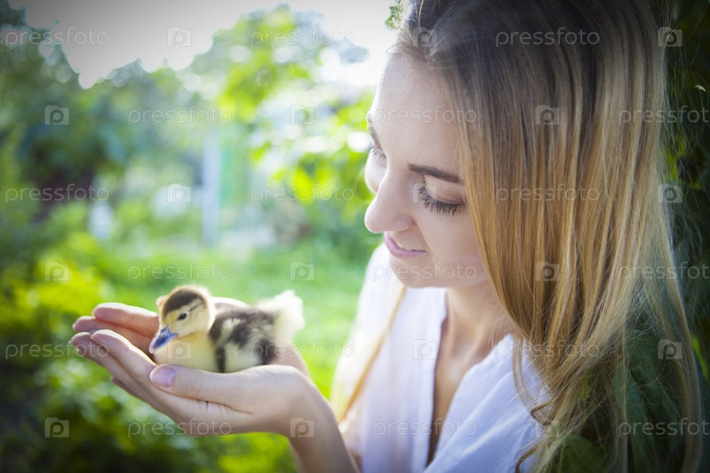Девушка с утенком в руках