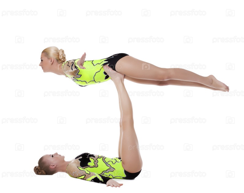 Две молодые гимнастки, изолированы на белом фоне