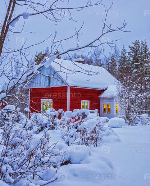 Красный дом зимой
