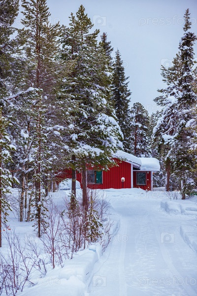 Красный дом зимой
