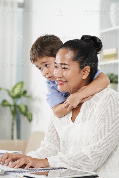 Мать работает с сыном