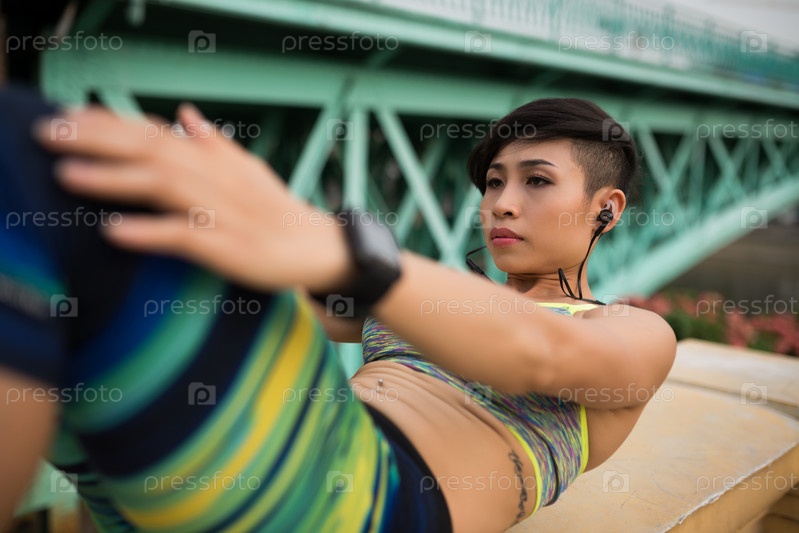Девушка качает пресс
