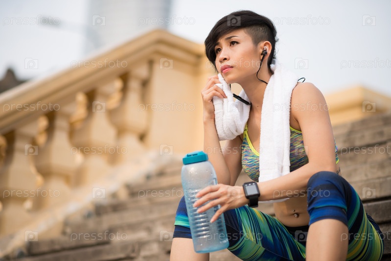 Девушка отдыхает после пробежки