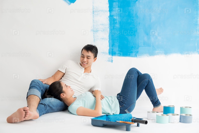 Молодая пара отдыхают после ремонта