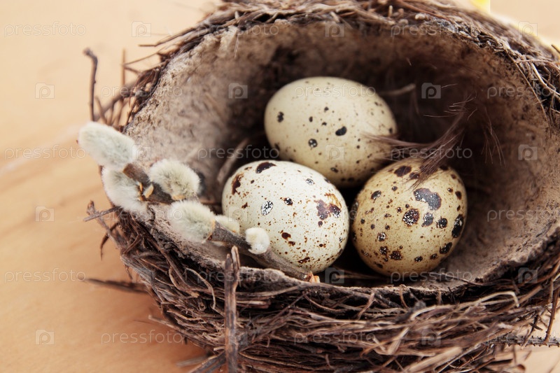 Три перепелиных яйца в гнезде