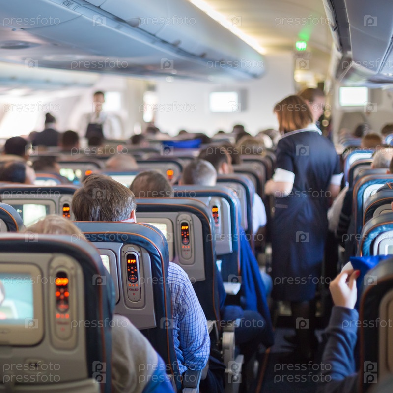 Пассажиры в салоне самолета