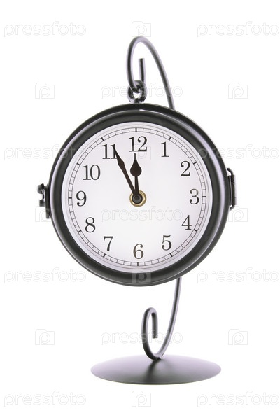 Круглые часы на подставке на белом фоне