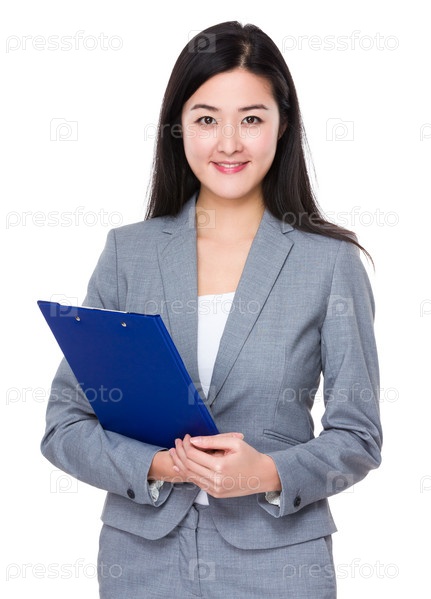 Молодая женщина с планшеткой