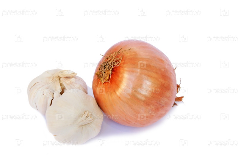 Лук и чеснок на белом фоне