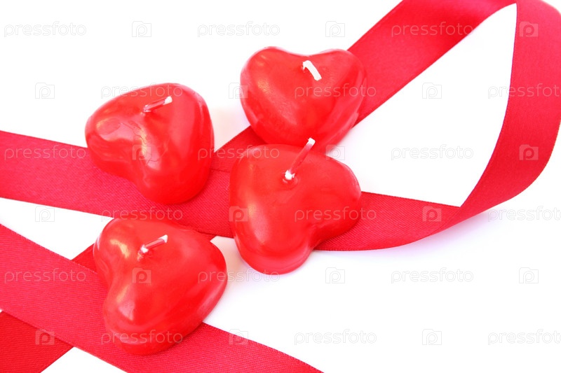 Свечи в форме сердца с лентой