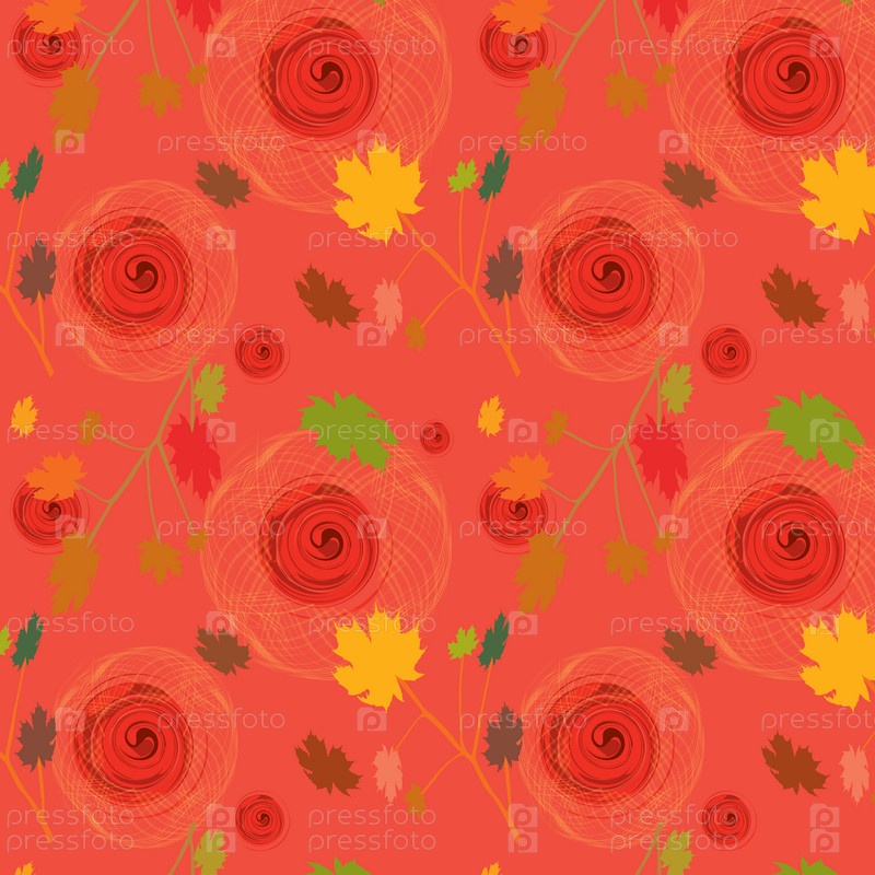 Векторный фон с розами и кленовыми листьями