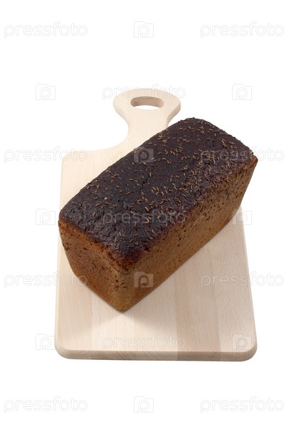 Черный хлеб с семенами тмина на деревянной доске. изоляция на белом фоне