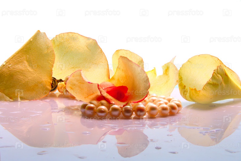 Жемчужное ожерелье и лепестки роз