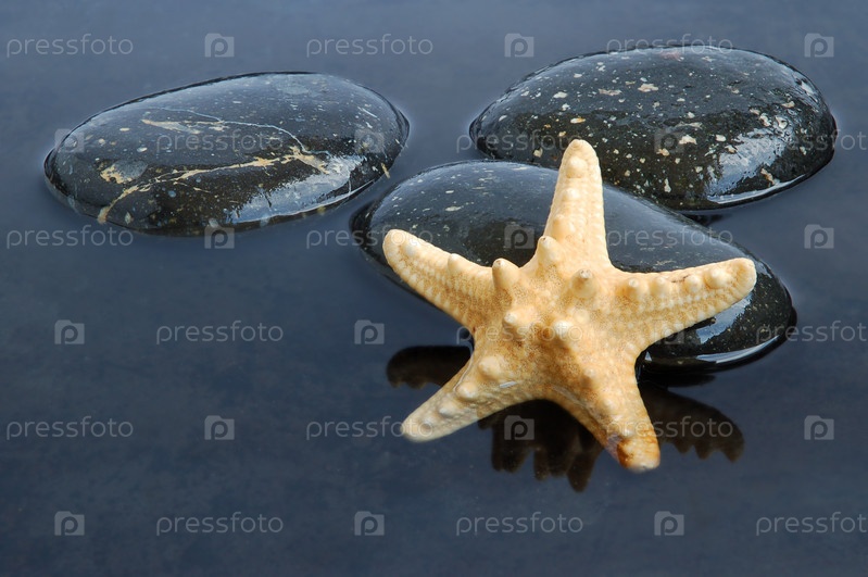 Морская звезда и черные камни в воде