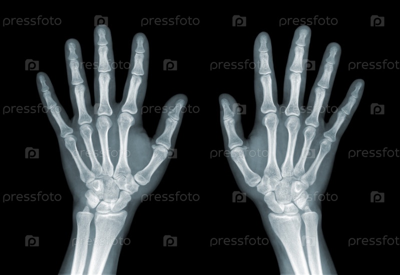 Рентгеновский снимок рук на черном фоне