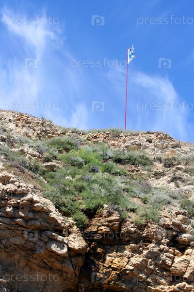 Флаг на скале, на фоне неба