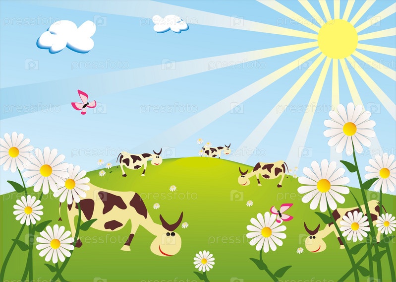 Коровы пасутся на лугу