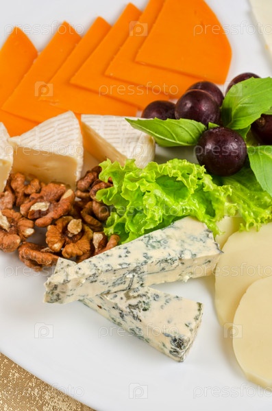 Сыр с зеленью, виноградом и орехами